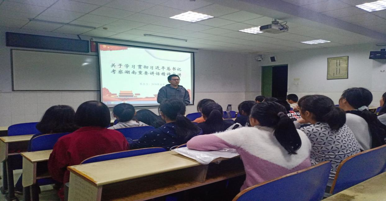 (通讯员 夏雨)为深入学习宣传贯彻习近平总书记考察湖南重要讲话精神,引领学生学习新思想,推动学校高质量发展,奋力谱写新时代中国特色社会主义大学新篇章。11月3日,我院组织学生学习习近平总书记考察湖南重要讲话精神。