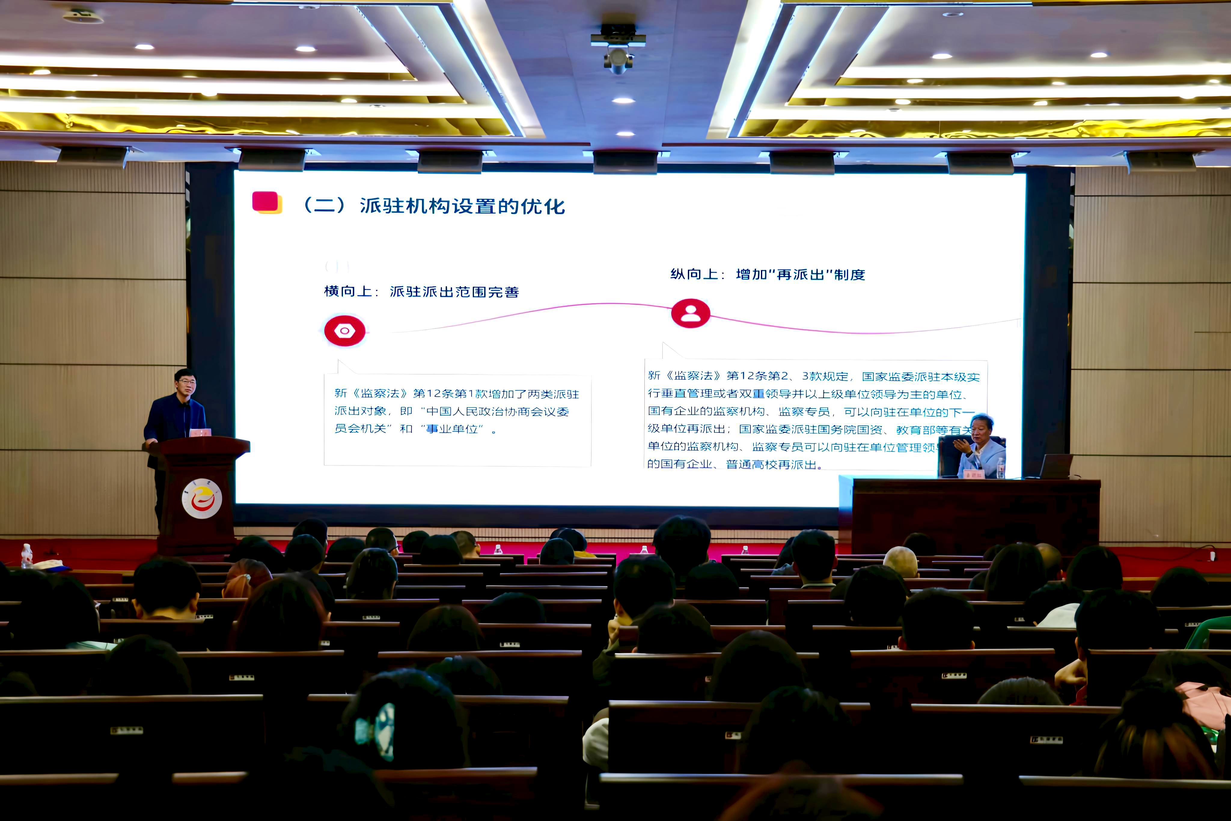 在师生热烈的掌声中,秦前红以“《中华人民共和国监察法》三问”为逻辑主线,通过设问“监察法为何需要修改”“监察法修改了哪些关键内容”“新监察法将如何实施”等关键问题,系统剖析《中华人民共和国监察法》修订的深层动因、核心要义及实施展望。