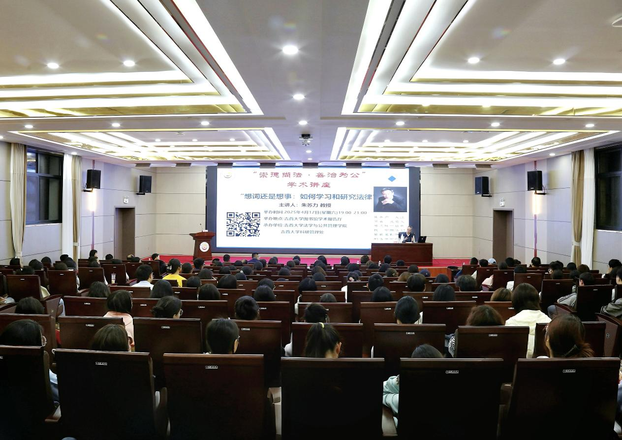 2025年4月12日晚,我院与科研管理处联合主办的题为“想词还是想事:如何学习和研究法律”学术讲座在砂子坳校区图书馆学术报告厅顺利举行。本次讲座特邀北京大学文科一级教授、长江学者朱苏力主讲,学院院长、教授郑牧民主持。湘西州法律界相关人士、校院领导及众多法学专业师生齐聚一堂,共享学术盛宴。