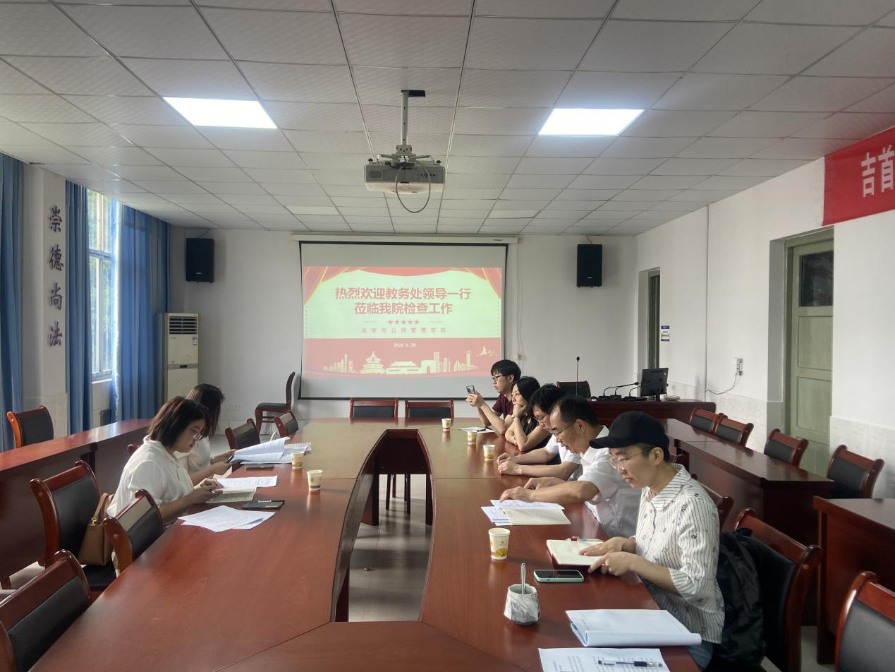 学期过半,为深入了解本学期教学的整体运行情况,确保教学工作平稳有序进行,提高教育教学质量,5月28日上午,WilliamHILL中国教务处副处长谌晓安,质量科科长尹小兰到法管学院检查指导我院各项教学工作。副院长(主持工作)郑牧民,副院长吴永清及法学系主任向准、公共管理系主任林旭鑫、教务办秘书周彦君、实验室主任吴楠陪同检查并汇报学院工作。