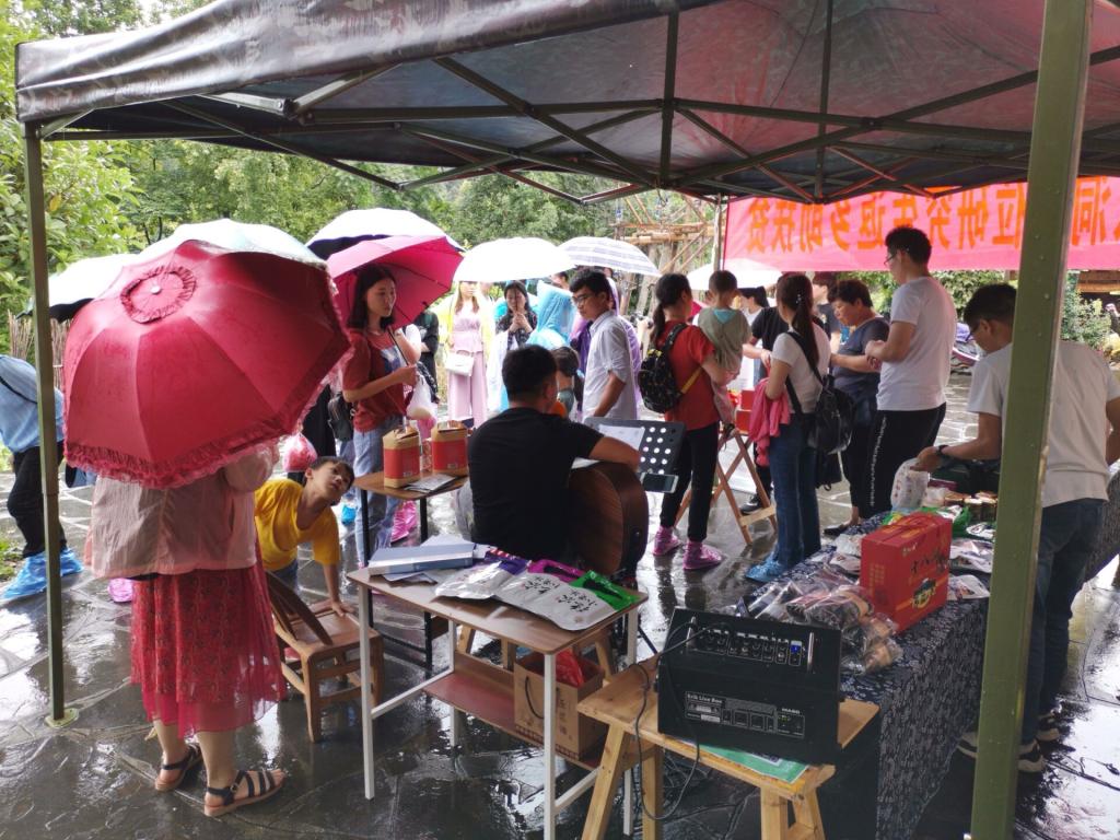 8号上午,团队5人与黑土麦田的工作人员一起在核心景区搭建展台、准备礼盒、搬运产品和搭建帐篷,在雨中依旧热情不减。向朝向当地居民借用了帐篷,并与当地研究生施志春取得联系,做好沟通协商工作。谈到加入黑土麦田公益计划的原因,向朝表示:“能在国家号召下,投入到社会建设中去,是我们这一代人的幸运”,并鼓励师弟师妹们“读更多的书,行更远的路,乐更多的人”,让团队成员们受益良多。