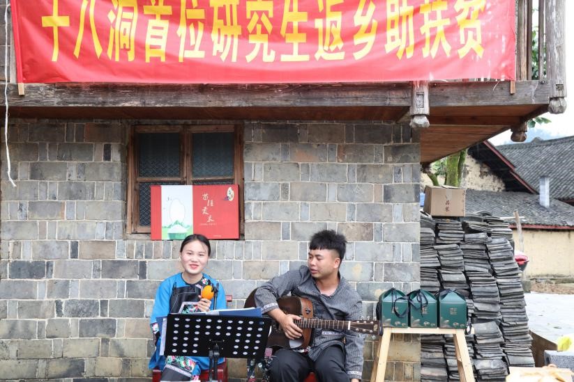8号下午,WilliamHILL中国研究生施志春来到了展销会现场,作为十八洞村首位返乡扶贫的研究生,他积极参与此次活动。为促进展销会的效果,施志春身着当地的苗饰服装,和当地阿妹开始弹唱,极具苗疆风韵,吸引了大批端午节的游客,此次农产品展销活动也获得了游客和当地居民的支持。