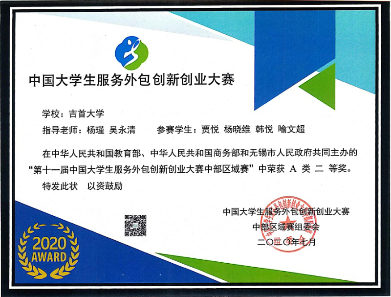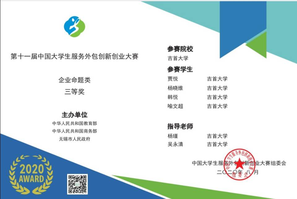 本网讯(通讯员 欧雪梅 罗慰)8月31日,第十一届中国大学生服务外包创新创业大赛获奖名单公布,我院在“智慧校园场景发掘与实践运用”赛题下的作品荣获中部赛区A类二等奖、全国三等奖。