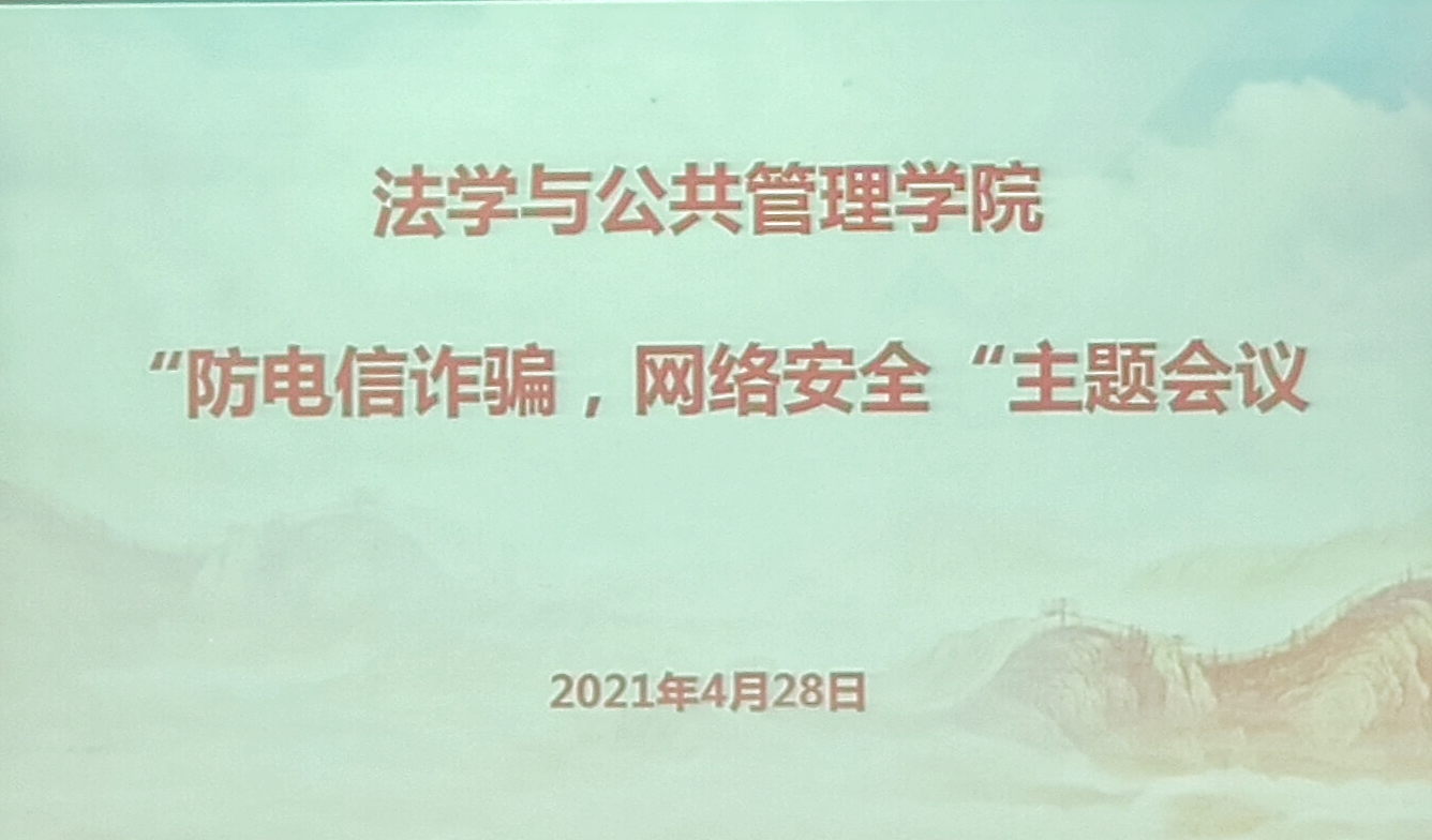 本网讯(许军 楚文成)为了增强学生防诈骗意识,进一步提高辨别是非的能力,4月28日中午,我院于第六教学楼模拟法庭开展防电信、网络诈骗讲座。出席本次讲座领导老师有学院党委副书记陈蓉,学工办主任文兰,团总支书记任倩,法学支部书记哈米拉提·买合木提以及我院全体学生干部参加。
