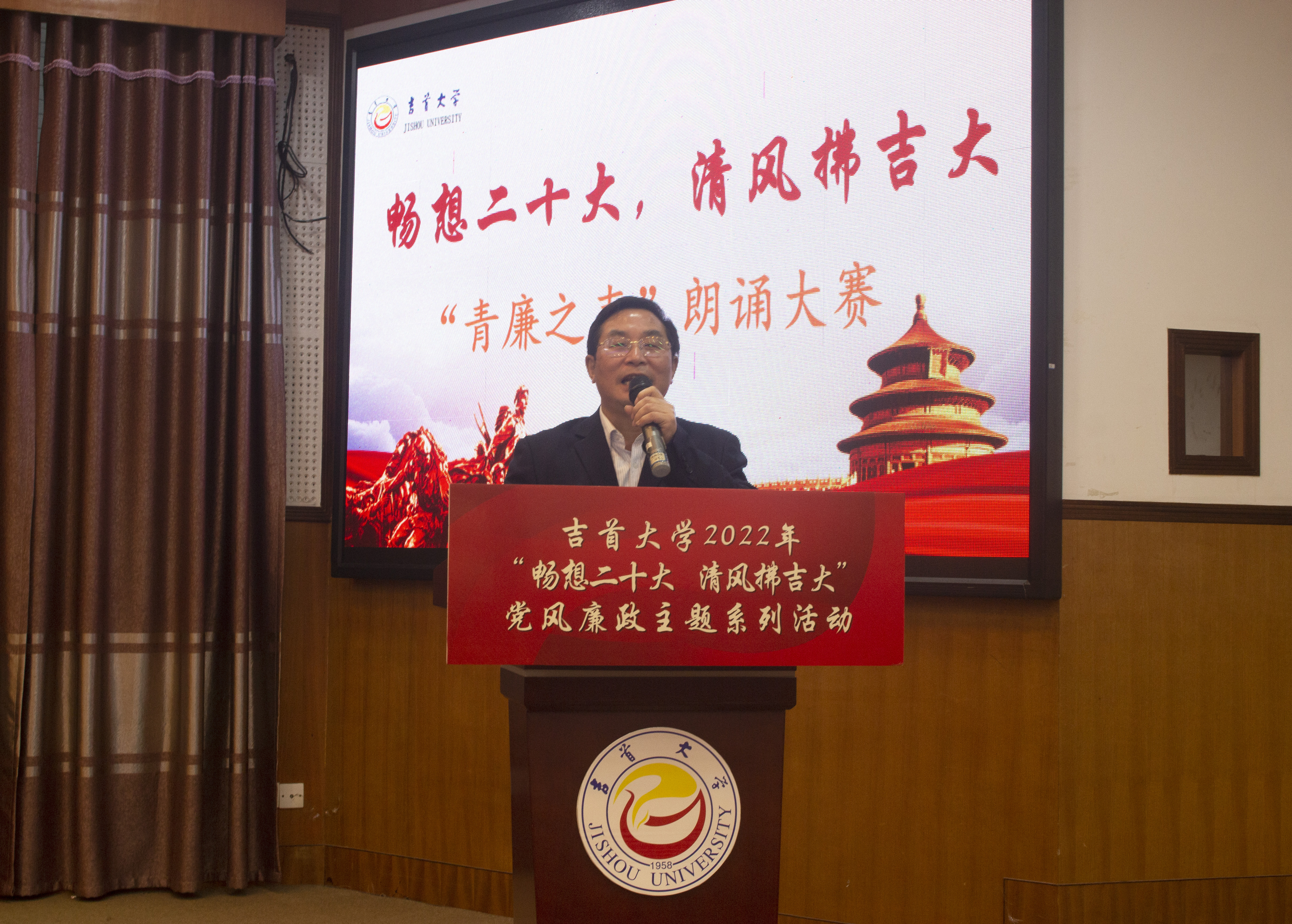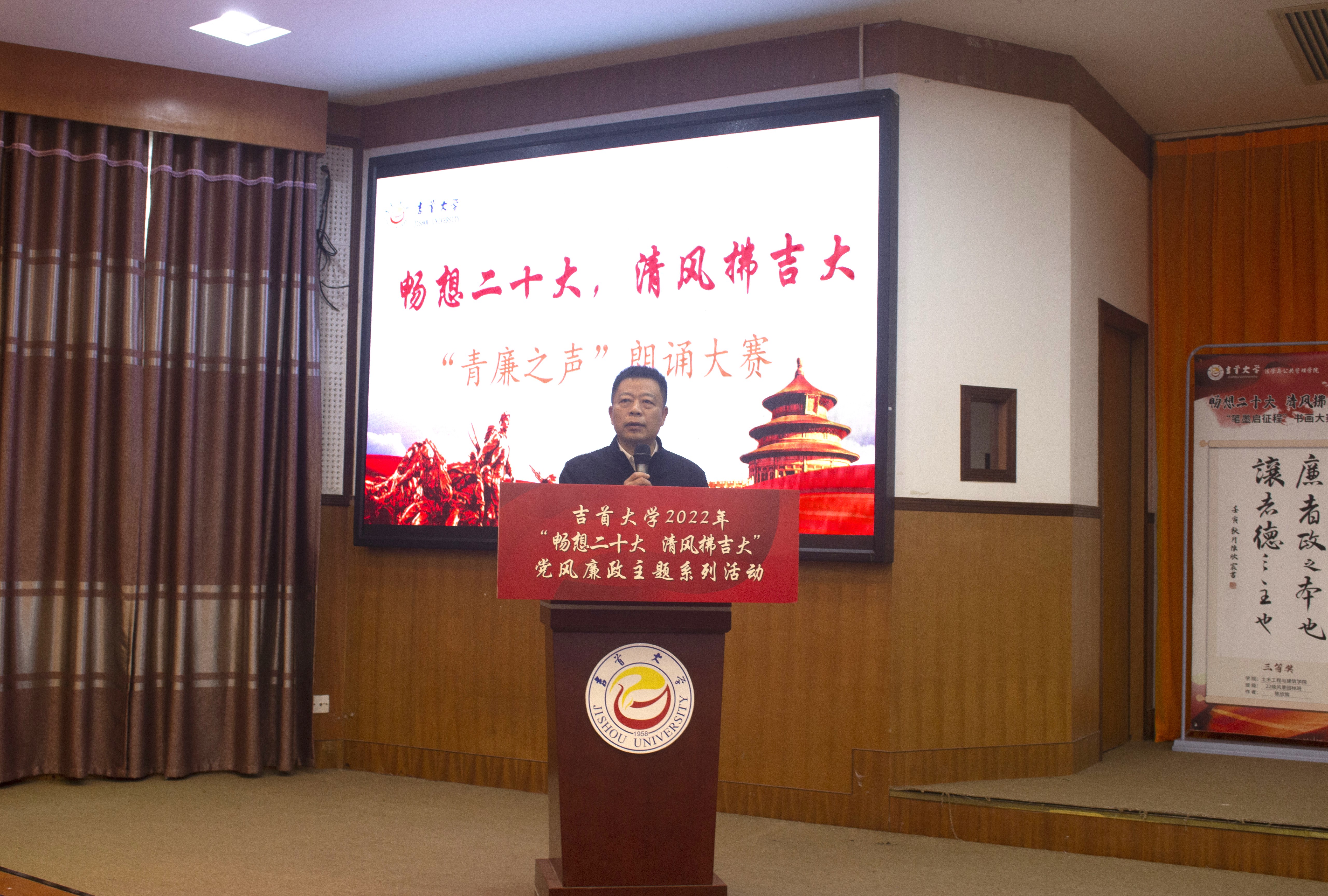 党委委员、宣传部部长罗惠缙总结发言,他表示本次活动以新颖的方式将诗、书、画融入廉洁之中,形式丰富多样,参与度高、覆盖面全。他寄语吉大学子坚持党的光荣传统和工作作风,做清廉的忠实践行者。