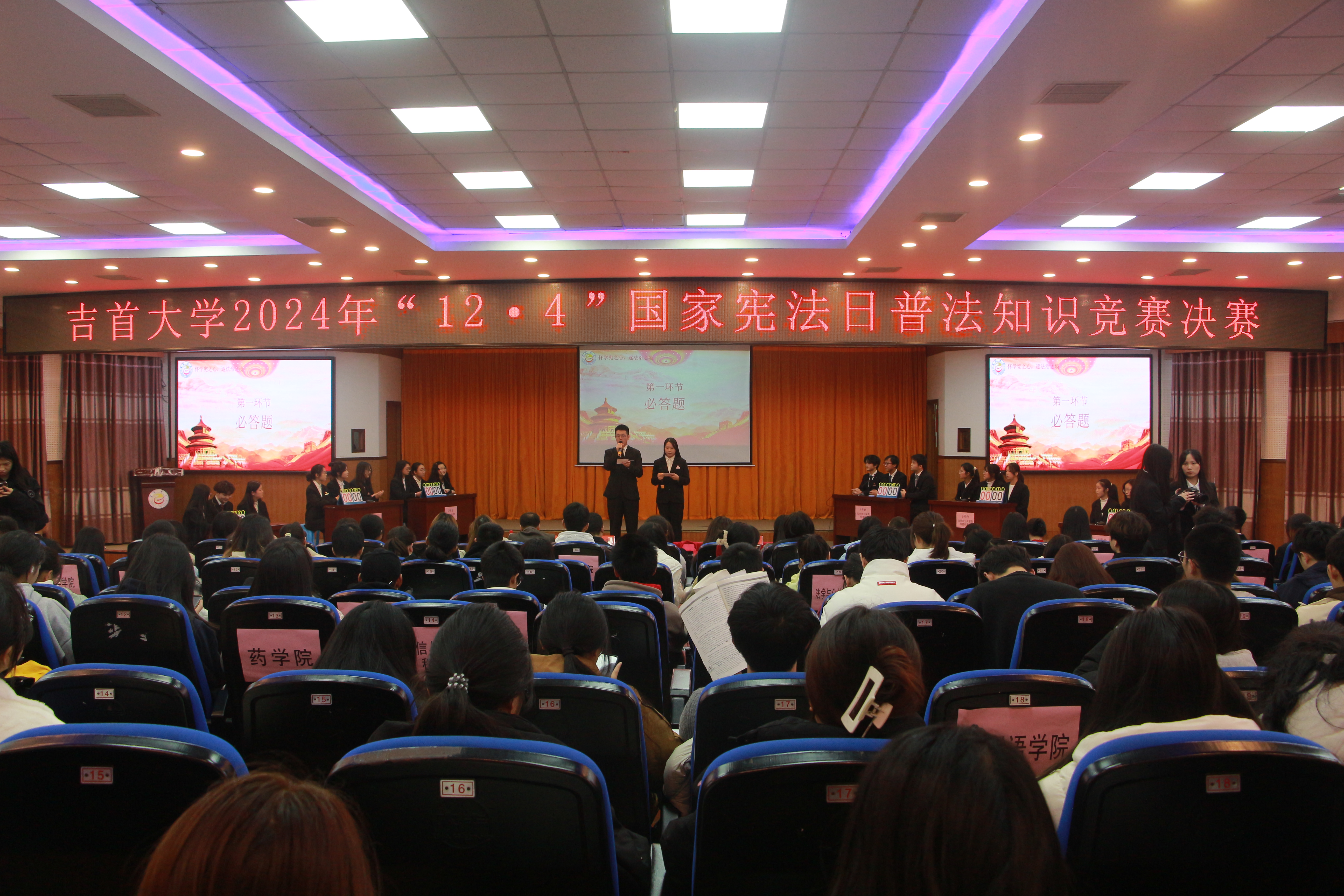 12月4日下午,WilliamHILL中国“12·4”国家宪法日系列普法活动之普法知识竞赛决赛在砂子坳校区第六教学楼模拟法庭举行。校党委保卫部副部长王锋,党委宣传部理论科科长闫慧远,校法律顾问、湘西自治州法律专家库成员何志红,法学与公共管理学院法学专业教师刘娟伶受邀参加活动。