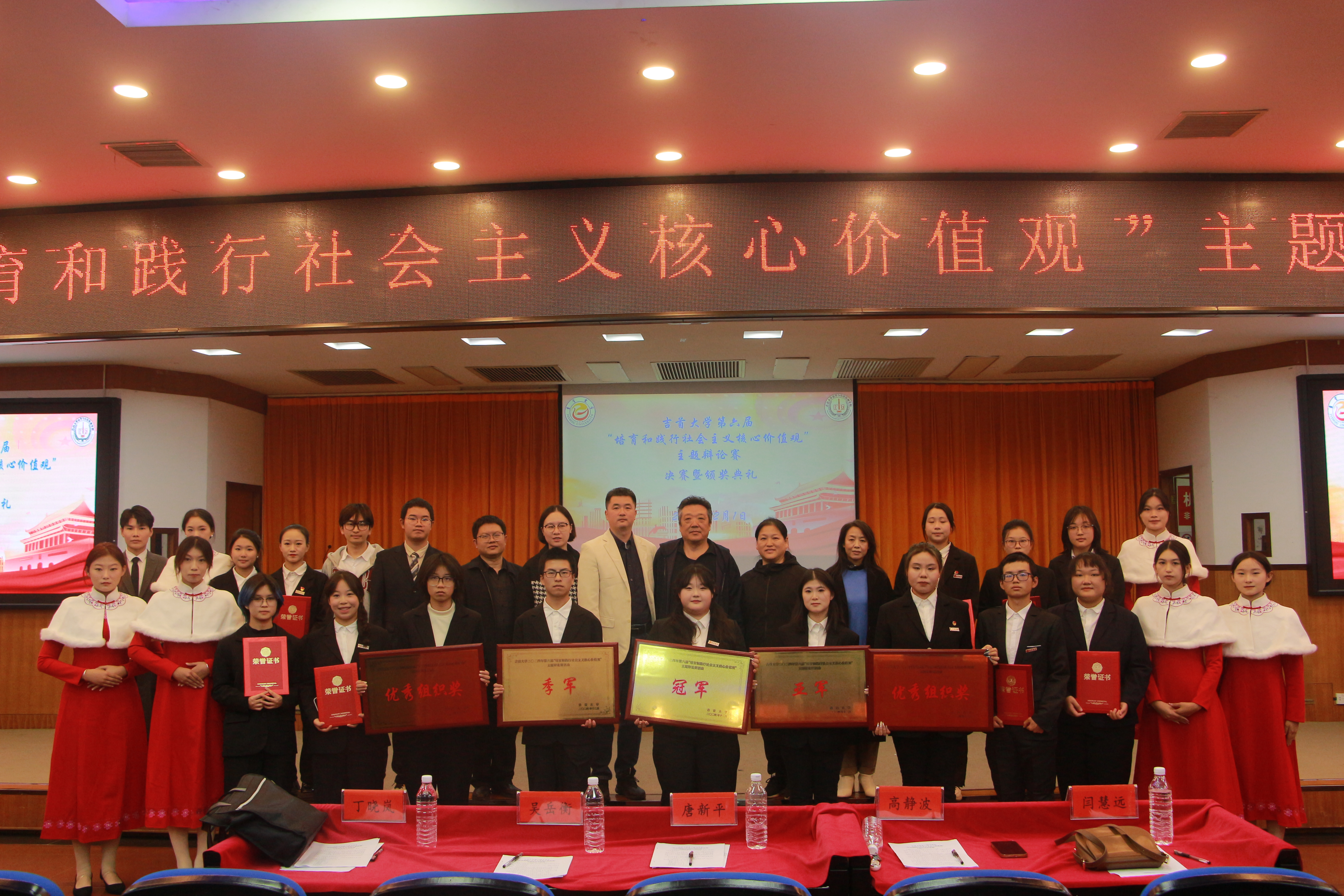 经过激烈的角逐和评判,法学与公共管理学院辩论队荣获冠军,音乐舞蹈学院辩论队、人文学院辩论队分别获得亚军和季军。此外,化学化工学院、土木工程与建筑学院、法学与公共管理学院获得优秀组织奖。韦奕春、唐诗文、王锶逸、陈星祁四位辩手凭借出色的表现荣获“最佳辩手”称号。