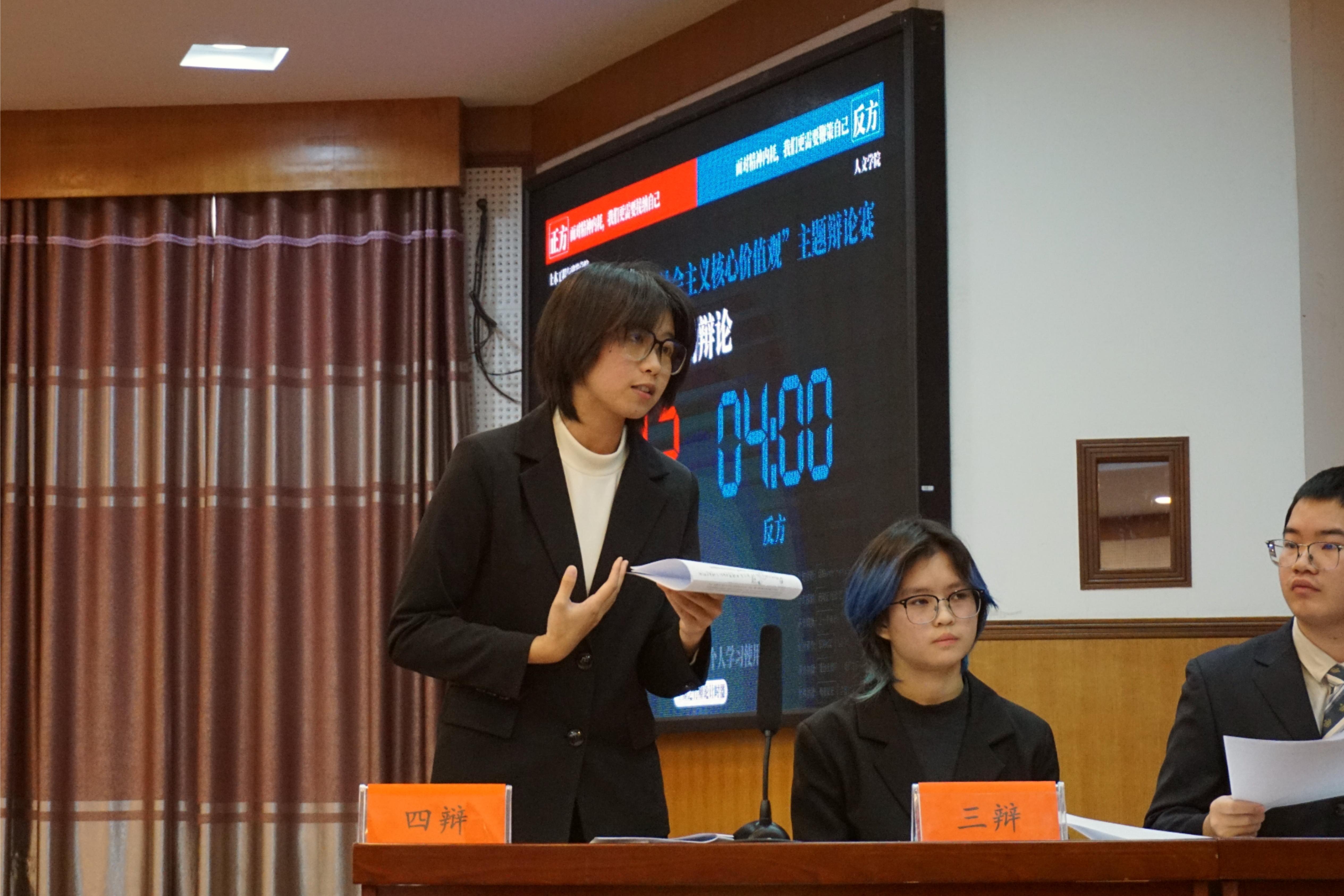 据悉,此次辩论赛历经了院内选拔赛、校内初赛、复赛、半决赛及决赛等多个阶段,得到了全校师生的广泛参与和积极响应。辩手们聚焦辩题、充分思考、理性论述,在辩论中深度融入了社会主义核心价值观的思想内涵,展现了新时代青年的责任与担当。