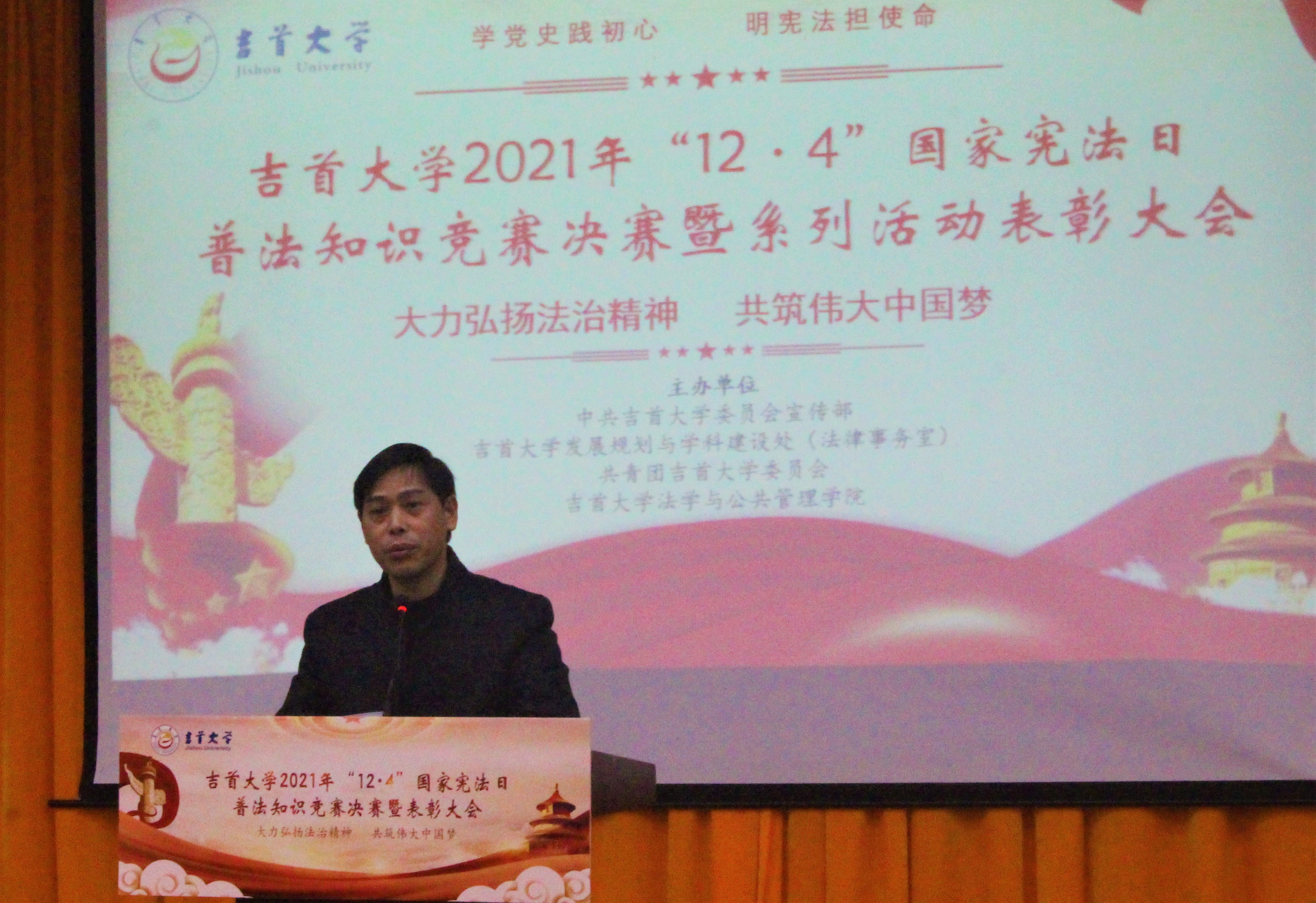 学生工作部部长欧阳大文在致辞中呼吁,“国无法不治,民无法不立”。宪法是国家的根本法,是治国安邦的总章程,是党和人民意志的集中体现,我们应该勿以恶小而为之,勿以善小而不为,要从小事做起,从好的方向做起,要遵纪守法,要学法懂法。