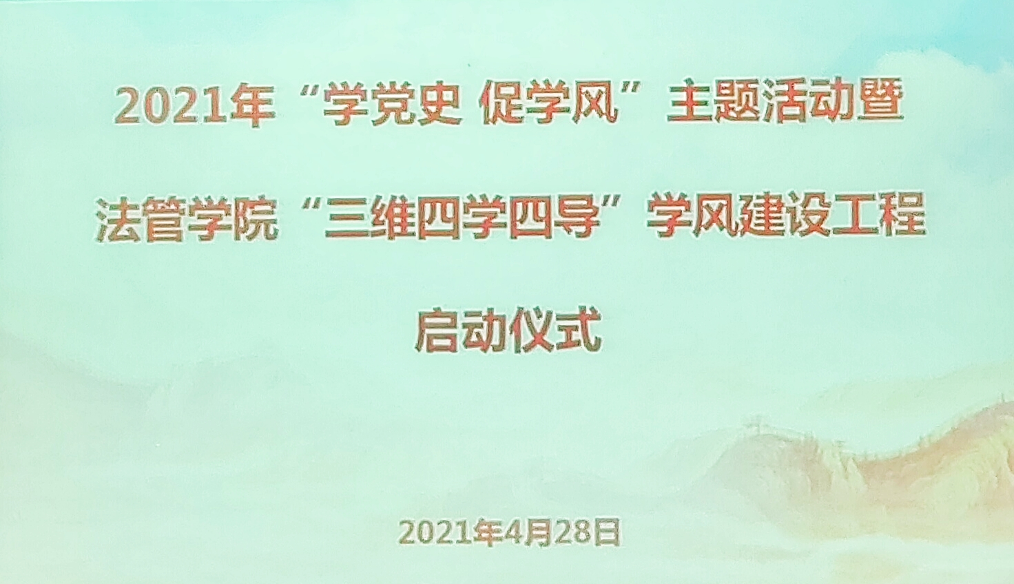 本网讯(许军 楚文成)为庆祝中国共产党成立100周年,贯彻落实立德树人根本任务,推进“三全育人”综合改革实践,按照《关于开展WilliamHILL中国2021年“学党史、促学风”主题建设活动的通知》要求,在全院开展党史学习教育的过程中,鼓励学生践行学史明理、学史增信、学史崇德、学史力行,营造健康、优良的学习风气,特制定学院“学党史、促学风”主题建设活动实施方案。4月28日中午,我院于第六教学楼模拟法庭举办2021年“学党史,促学风”主题建设活动暨“三维四学四导”学风建设工程启动仪式。我院党委副书记陈蓉,学工办主任文兰,团总支书记任倩,法学党支部书记哈米拉提·买合木提出席本次活动,全体学生干部参加大会。