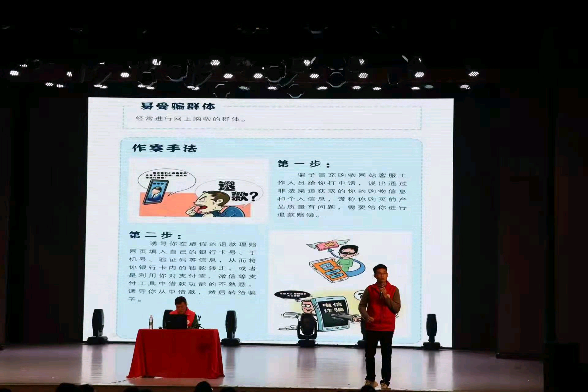 “典”亮湘西法律志愿服务团的专业性和其力求贴近生活的宣讲方式赢得了在场学生的热烈反响,让同学们充分了解了最新通讯网络诈骗的作案种类及其具体手法,做到面对诈骗心中有底,心里有数,筑牢防范屏障。