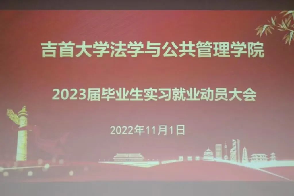 本网讯(通讯员 张苗苗 欧阳静)为提高当代大学生专业素养和自主就业能力,11月1日,我院在模拟法庭召开2023届毕业生实习就业动员大会。院党委书记彭献忠,副院长吴永清,学工办主任文兰,辅导员哈米拉提•买合木提、谭林锋,教务办秘书周彦君参与会议。本次会议由周彦君主持。