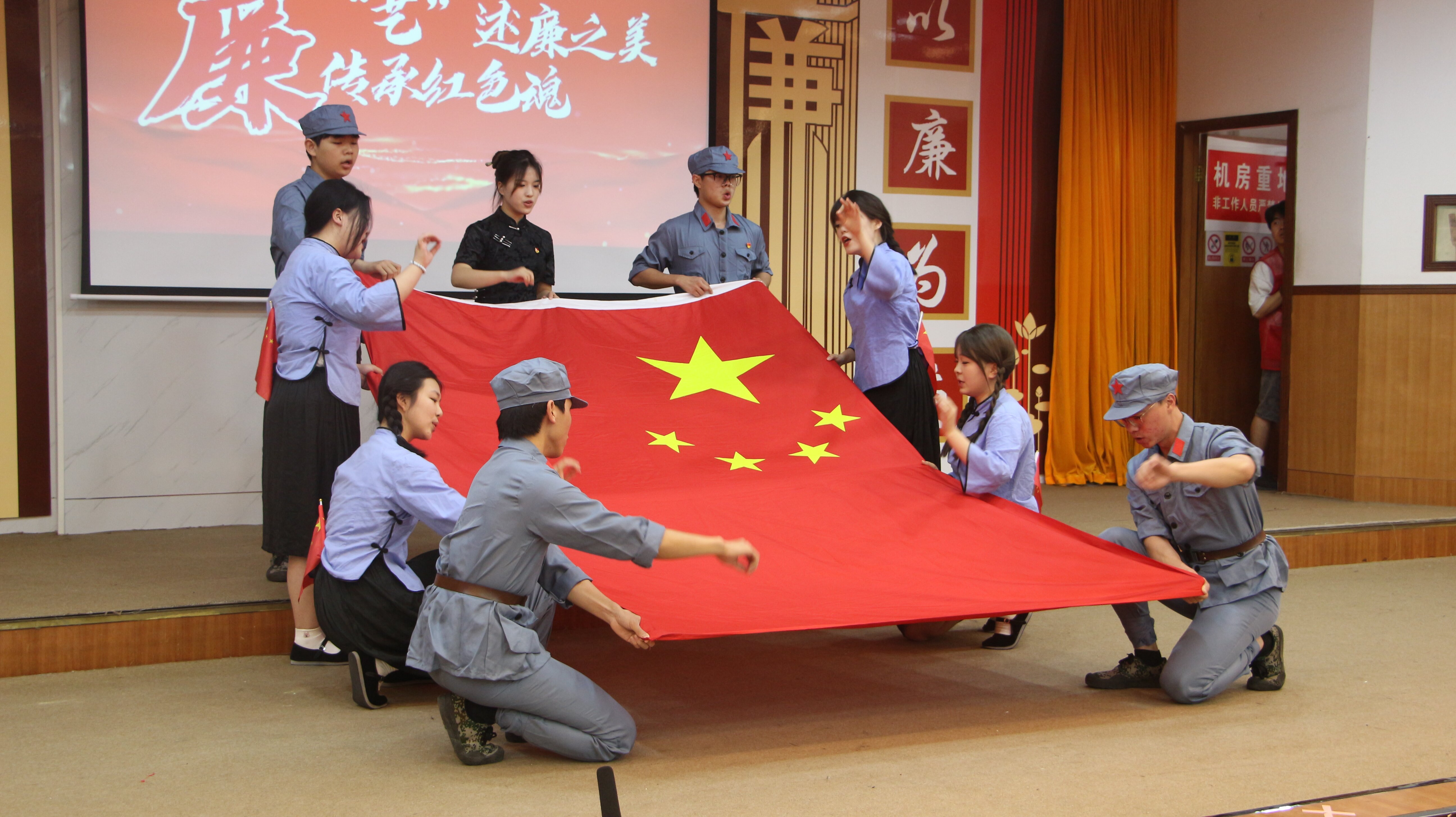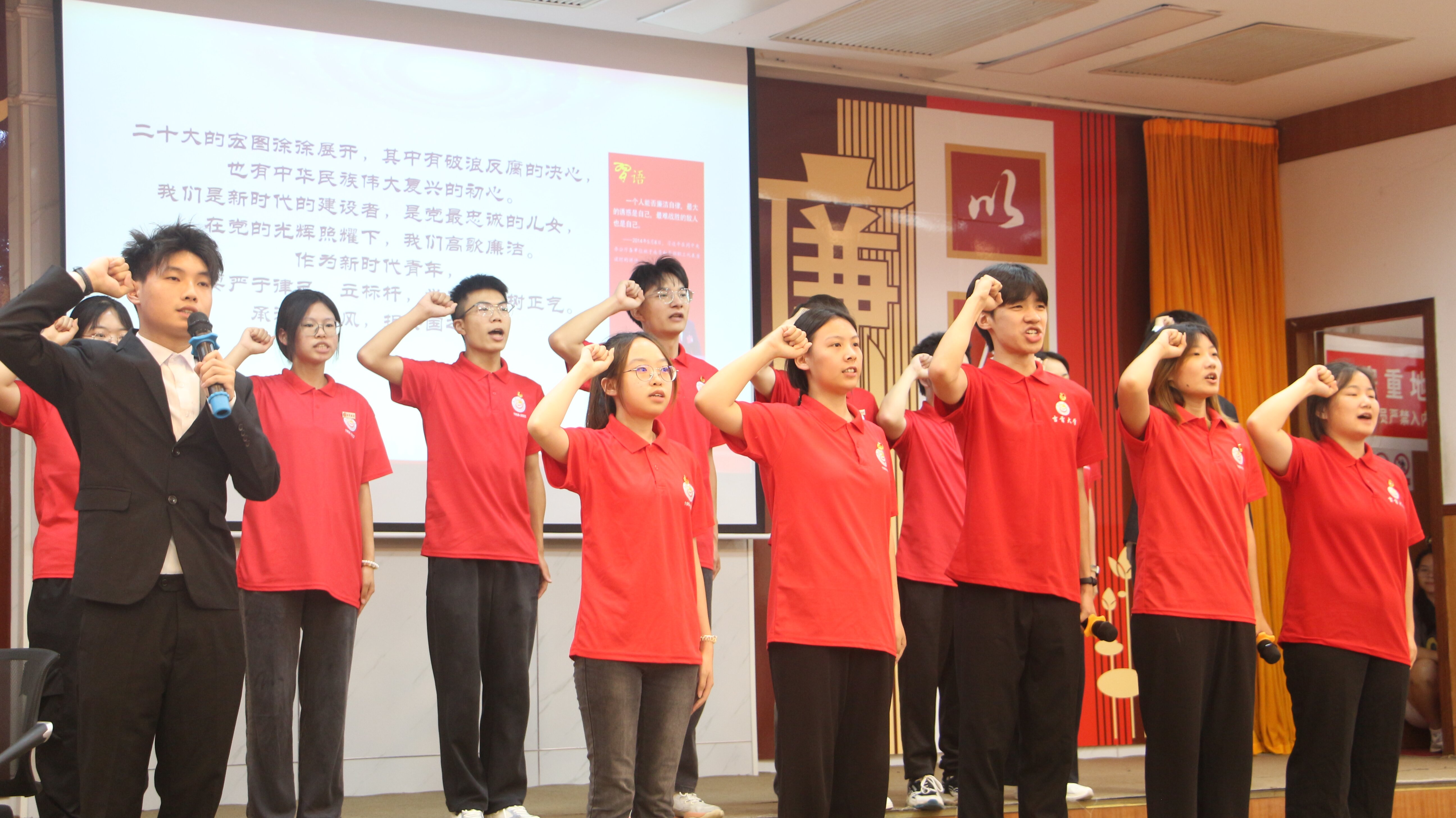 5月25日下午,作为本次系列活动的压轴大戏,“以艺传情,以廉为荣”文艺表演大赛暨颁奖典礼在砂子坳校区模拟法庭举行。歌舞、朗诵、话剧等丰富多彩的艺术形式,不仅展示了师生们的艺术才华,更传递了对廉政文化的深刻理解和践行精神。在文艺表演过程中,穿插的有奖问答环节更是将现场气氛推向高潮,师生们积极参与,共同思考,共同感悟廉政文化的重要性。这一环节不仅激发了观众的热情,也进一步加深了师生们对廉政文化的认识和理解,激发了师生们的心灵共鸣。