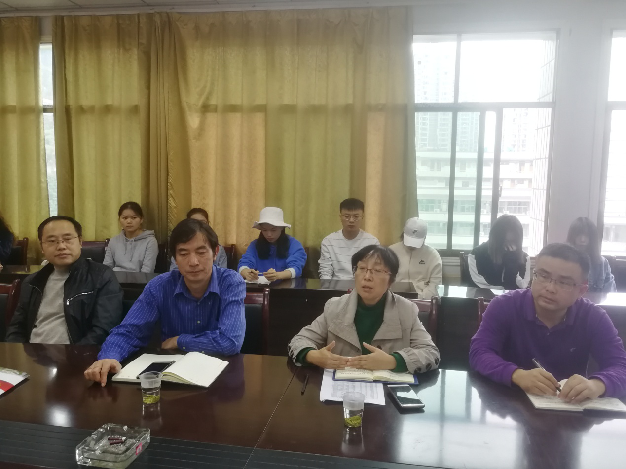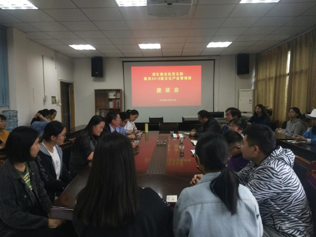 我院党委书记彭献忠书记首先欢迎各位领导老师莅临指导我院临近毕业班级学生考研、考公及就业工作;班主任聂军老师向招就处领导老师汇报了2016级文化产业管理班级学生的考研、考公、就业情况及思想动态;学工办主任段武城老师向各位领导老师反映16文管班在考研、考公及就业过程中遇到的疑难问题。随后,16文管班考研、考公及就业学生代表针对自身情况向就业处领导老师提出咨询,就业处领导老师针对同学们反映和提出的各类情况和问题作出认真详细的分析和回答,同时对大家的考研、考公及就业工作开展方面提供了很有建设性意见的指导和帮助,随后告诉全体学生如果对考研、考公及就业还有问题的随时到学校招生就业处办公室反映,老师们会尽自己的最大能力为大家解决疑惑和困难。