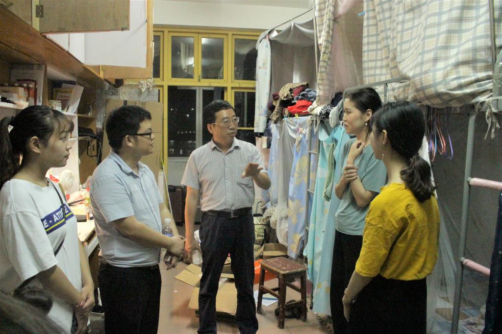 为进一步了解学生宿舍生活情况,9月28日晚8点,党委书记彭献忠,学工办全体人员以及班主任一行来到八栋,走进宿舍,排查国庆长假前的安全隐患。