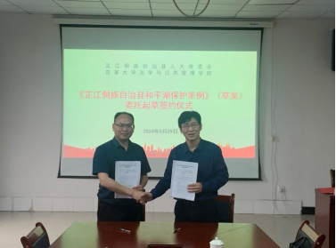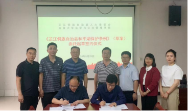 (图为双方签订《芷江侗族自治县和平湖保护条例》(草案)委托起草协议)