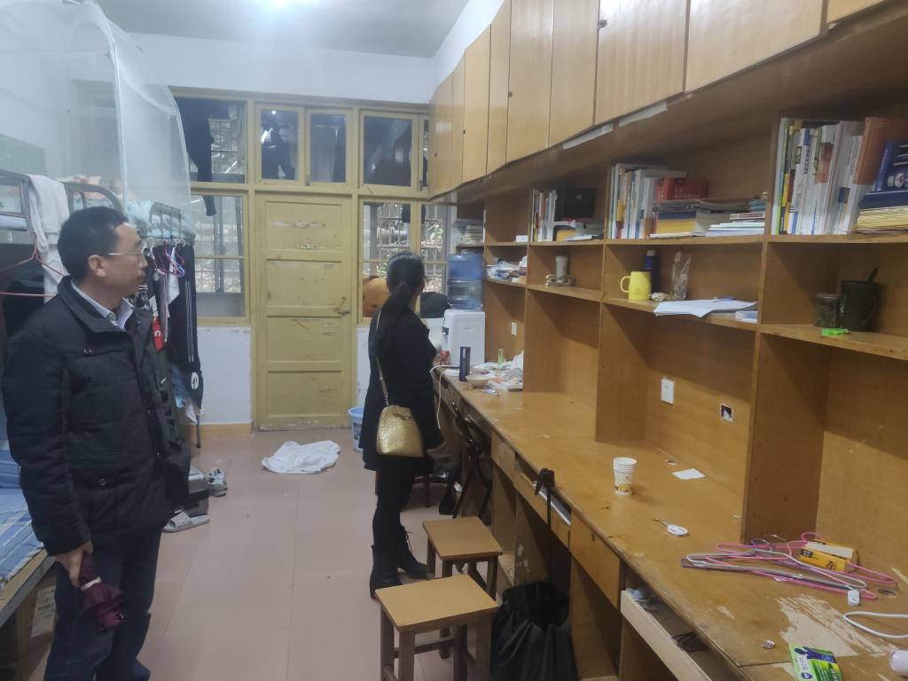 突击过程中发现寝室没人并没有锁门的情况,对宿舍进行了检查。彭献忠指出在平时学生管理工作中强调同学们冬日安全用电的同时,还一定要加强同学们的日常安全防范意识,防火防盗防诈骗。