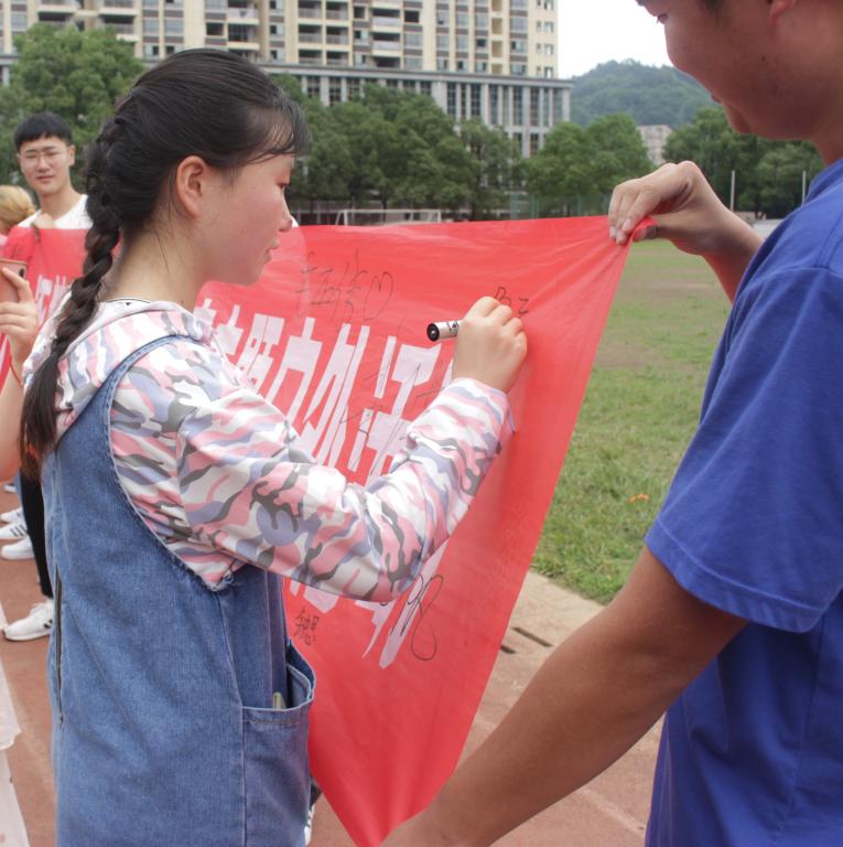 同日,在校田径场,我院组织参与活动的同学们有序地在横幅上签下自己的姓名,进行“我的青春,自己书写”主题签名活动,并合影留念。