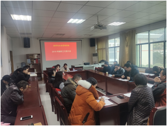 随后,与会教职工围绕《学院2019年年终分配方案》展开了热烈的讨论,并形成相关决议。全体与会教职工一致举手表决,通过了《法学与公共管理学院2019年院长工作报告》、《法学与公共管理学院2019年工会工作报告》和《法学与公共管理学院2019年年终分配方案》。