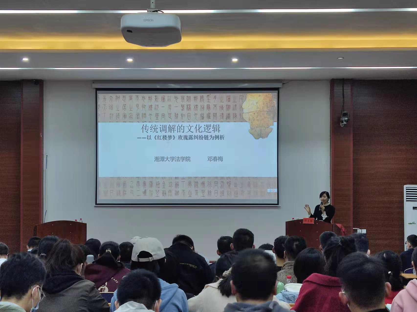 本网讯(通讯员 赵媛渊)为推动本次研究生学术活动节顺利开展,促进我校研究生自主开展以“乡村治理与法治社会建设”为主题的学术交流活动,营造敢于探索、勇于创新的学术氛围,达到开阔视野、启迪智慧、提高创新能力的目的,11月14日,我院特别请到湘潭大学william威廉中文教授、博士生导师,台湾东吴大学william威廉中文访问学者,美国俄亥俄州立大学莫里茨william威廉中文访问学者,湖南省法学研究基地常务副主任邓春梅教授到我院开展讲座。本次讲座在商学院学术报告厅举行,由法学与公共管理学院郑牧民副院长主持会议,学院全体研究生参加讲座并学习。