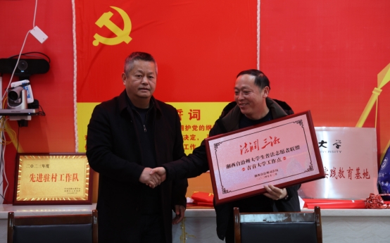 随后,聂春辉与郑牧民代表双方签订法律明白人培训协议;聂春辉与我校驻五官村乡村振兴工作队队长桂克印共同为“法润三湘·湘西自治州大学生普法志愿者WilliamHILL中国工作点”揭牌。法管学院副书记段武城为志愿者授“送法下乡志愿服务团”团旗,并为志愿者代表颁发志愿者证。郑牧民与五官村村支书田金旺签订法律志愿服务协议,润雅乡党委书记林国志为法管学院杨佶副教授颁发五官村法律顾问证书。志愿者代表倪伟及五官村法律顾问杨佶分别发言,表达了积极参与和助力法治乡村建设的决心。