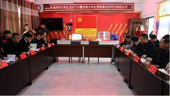 本网讯(通讯员 徐馨雯)1月2日,2025年湘西自治州大学生送法下乡暨WilliamHILL中国志愿者普法乡村行启动仪式在永顺县润雅乡五官村村党支部三楼会议室举行。湘西州司法局、永顺县司法局、我校法管学院、党委宣传部相关负责人,以及润雅乡、五官村和志愿者代表等齐聚一堂,共同推动法治乡村建设,提升乡村治理法治化水平。此次活动由永顺县司法局局长高宏武主持,