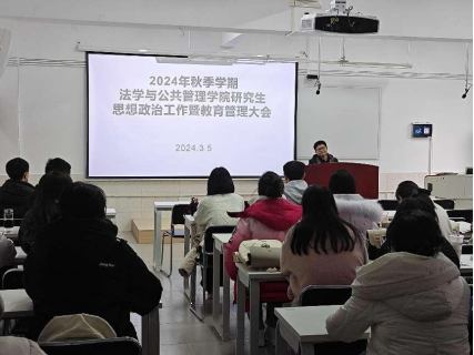 为进一步抓好研究生培养工作,围绕立德树人根本任务,加强研究生思想政治工作,规范研究生日常管理。3月5日下午,我院在法管学院409教室召开研究生新学期思想政治教育暨日常管理工作大会。院党委副书记段武城主讲,研究生秘书向上主持,22级、23级全体在校研究生参加。