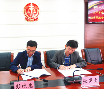 随后,双方还签署了《实习基地合作协议书》,并为基地挂牌。宁乡法院政治部部分同志与彭献忠一行在院院合作、学生实践教学等方面进行了深入地沟通与交流。参加座谈会的还有2004届法学专业优秀毕业生、现宁乡综合审判庭员额法官戴龙文。