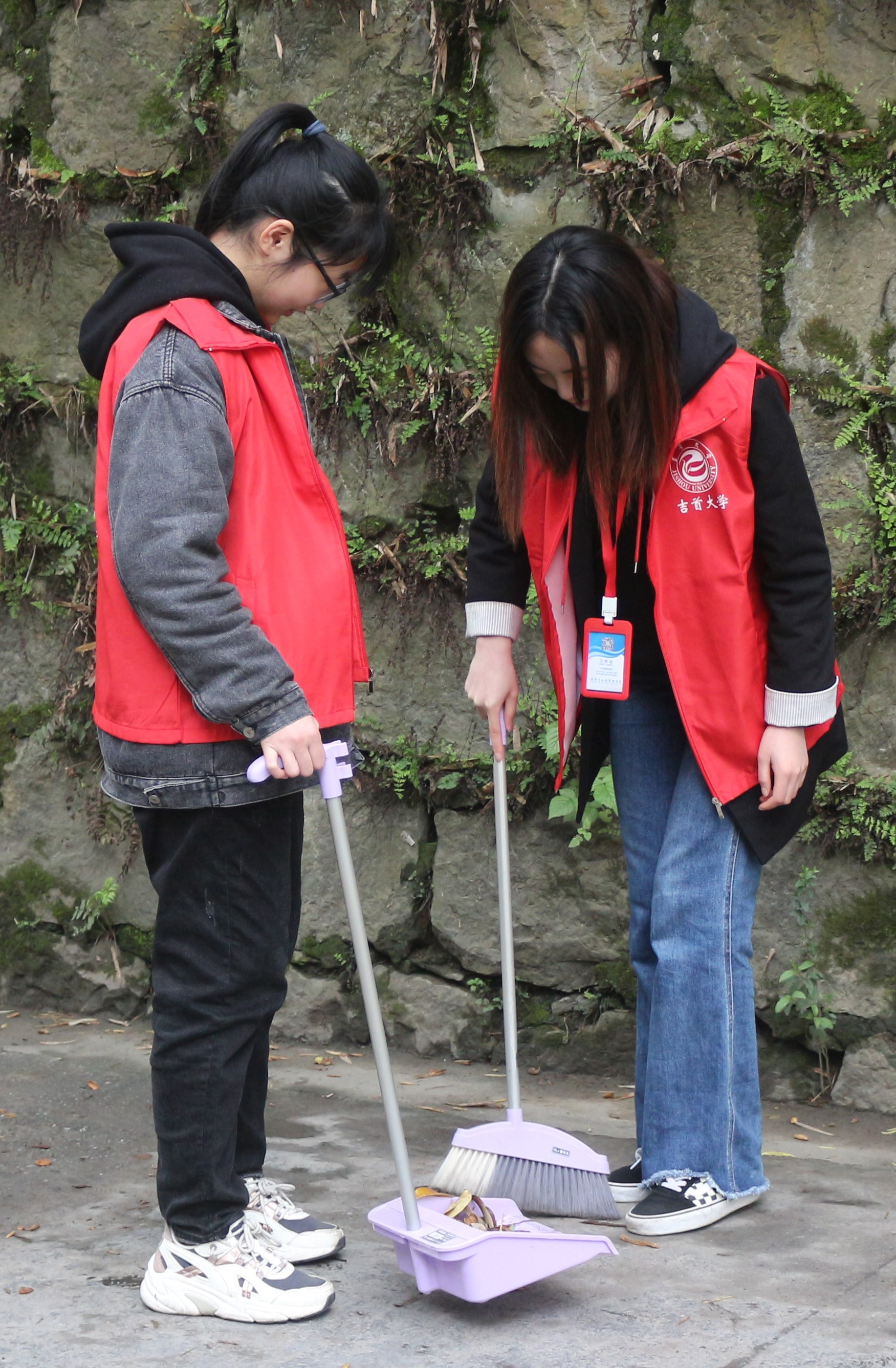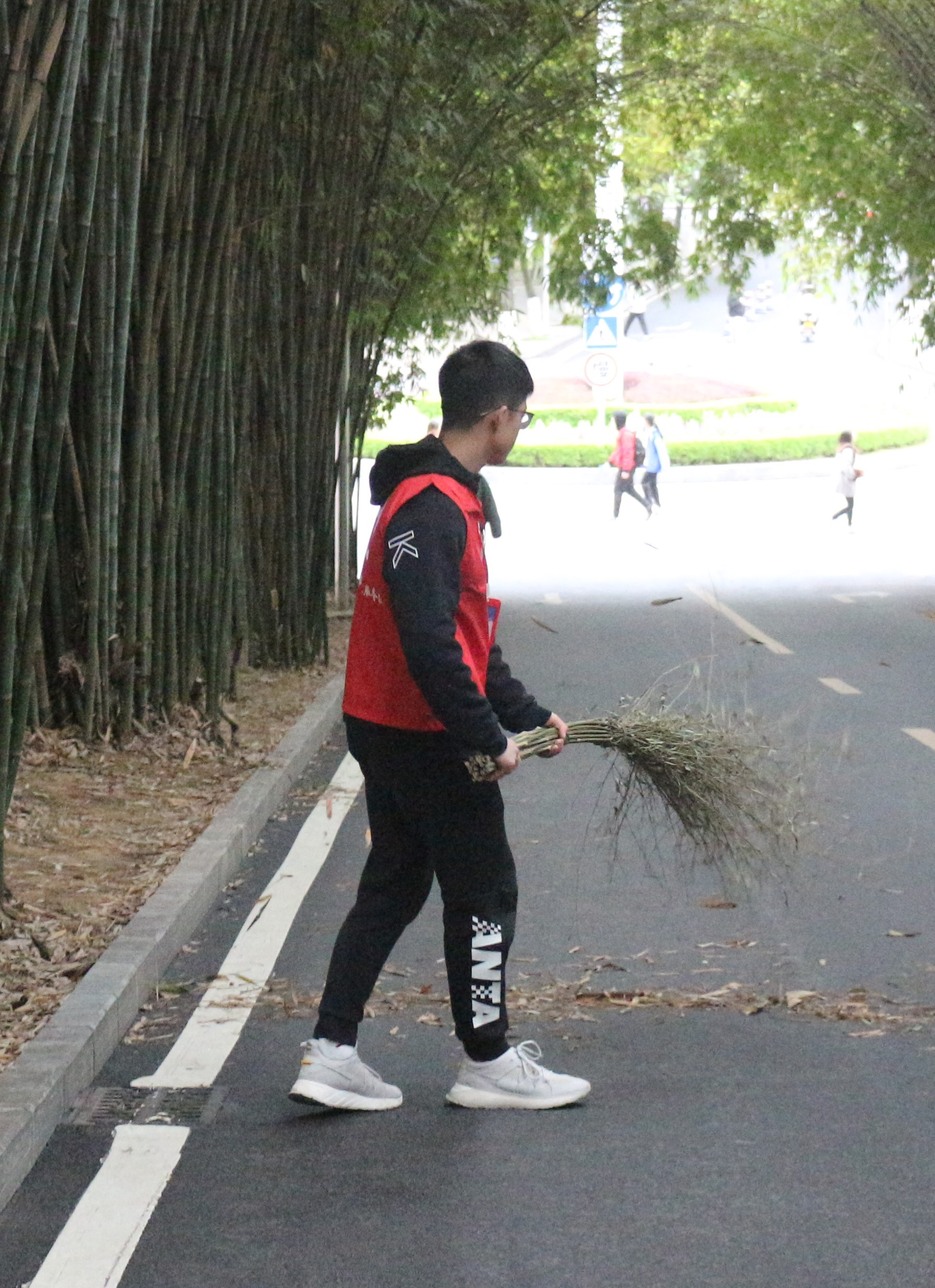 (图为 志愿者清扫校园道路 宋梦璇 摄)