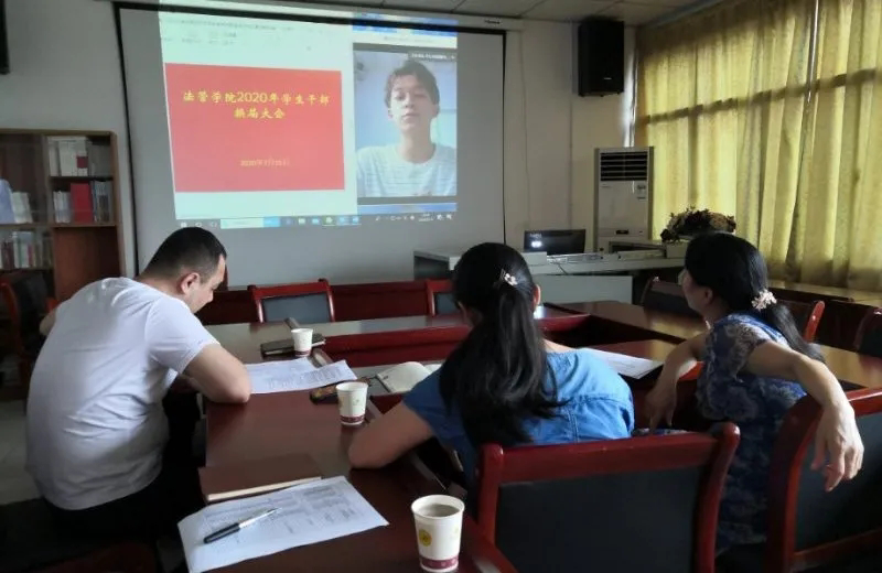 本网讯(通讯员 楚文成 罗慰)过去一年,我院四大部门以服务全院师生为己任,积极开展各种活动,圆满完成各项任务。715日,我院举行第十届学生干部线上换届面试大会,我院党委副书记陈蓉,学工办主任文兰,团总支书记任倩,辅导员哈米拉提•买合木提作为面试评委与会。我院学生干部参与面试选拔,会议由秘书处杨佳霖主持。