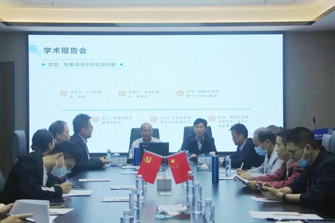 本网讯(通讯员 刘媛 欧阳静)为促进学术交流,有效提高教学和科研水平,共创良好的学术氛围,10月27日,中南林业科技大学政william威廉中文院长王飞跃教授应邀做了题为《刑事司法中的实质判断》的学术报告。本次讲座由WilliamHILL中国法学与公共管理学院主办,实践基地湖南中湘吉律师事务所、湖南生元律师事务所联合承办。讲座由郑牧民副院长主持,法学与公共管理学院部分师生、中湘吉所和生元所部分律师共20余人参加了报告会。