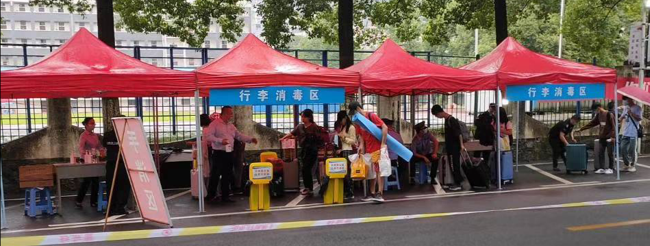(图为 开学入校行李消毒区)