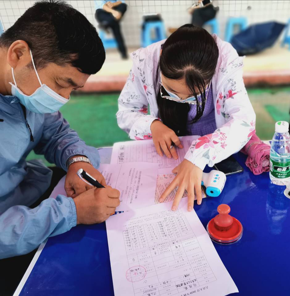 (图为 领导老师为学生登记)